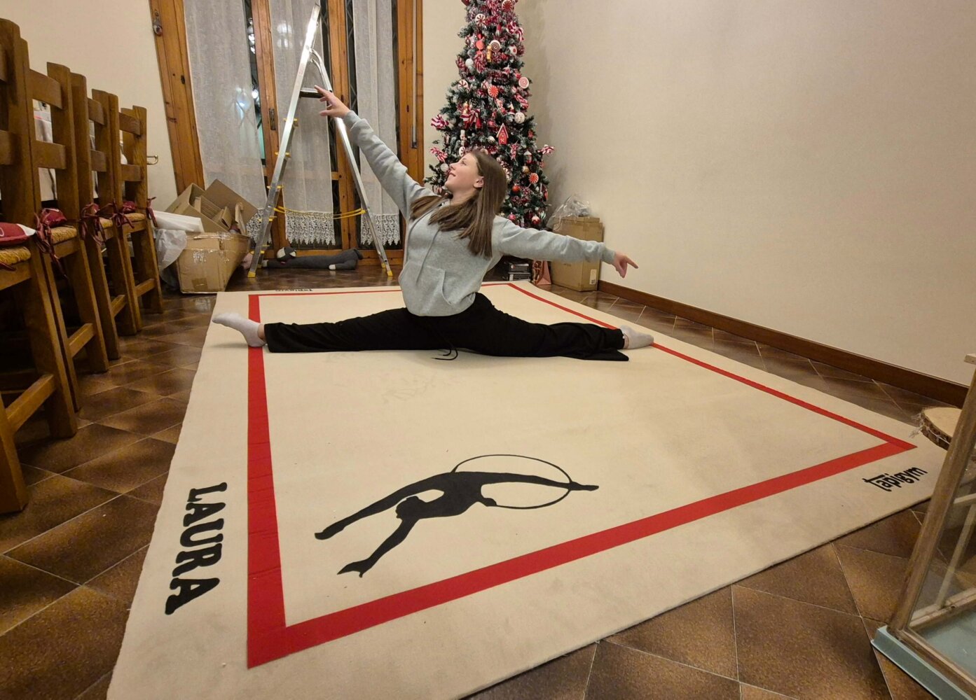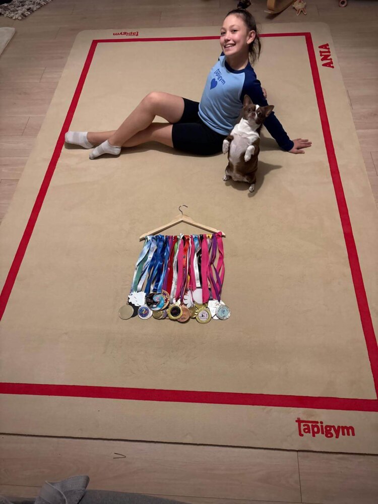 Es una confección en menor dimensión de un tapiz de competición, ideal para decorar la habitación de una gimnasta. Perfecta para “entrenar” en cualquier estancia de un hogar. Es un regalo perfecto para todas aquellas personas amantes de la gimnasia rítmica.